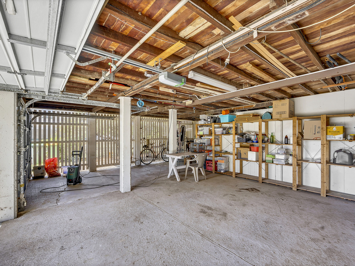 Stepping outside, the back deck is a standout feature. With lights, power, and ample room for both a dining table and lounge area, it’s the perfect spot to relax in a hammock while overlooking the George Alder Tennis Centre. The property is fully fenced on a generous 802m2 block and comes complete with three water tanks and pump, a garden shed, a chicken coop, rear yard access, a 3.5kw solar system with 6kw battery, and a solar hot water heat pump. Another entertainment area can be found downstairs, overlooking the beautifully established backyard with lemon, lime, and grapefruit trees.