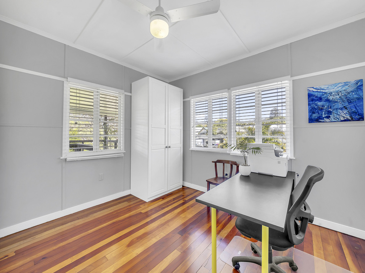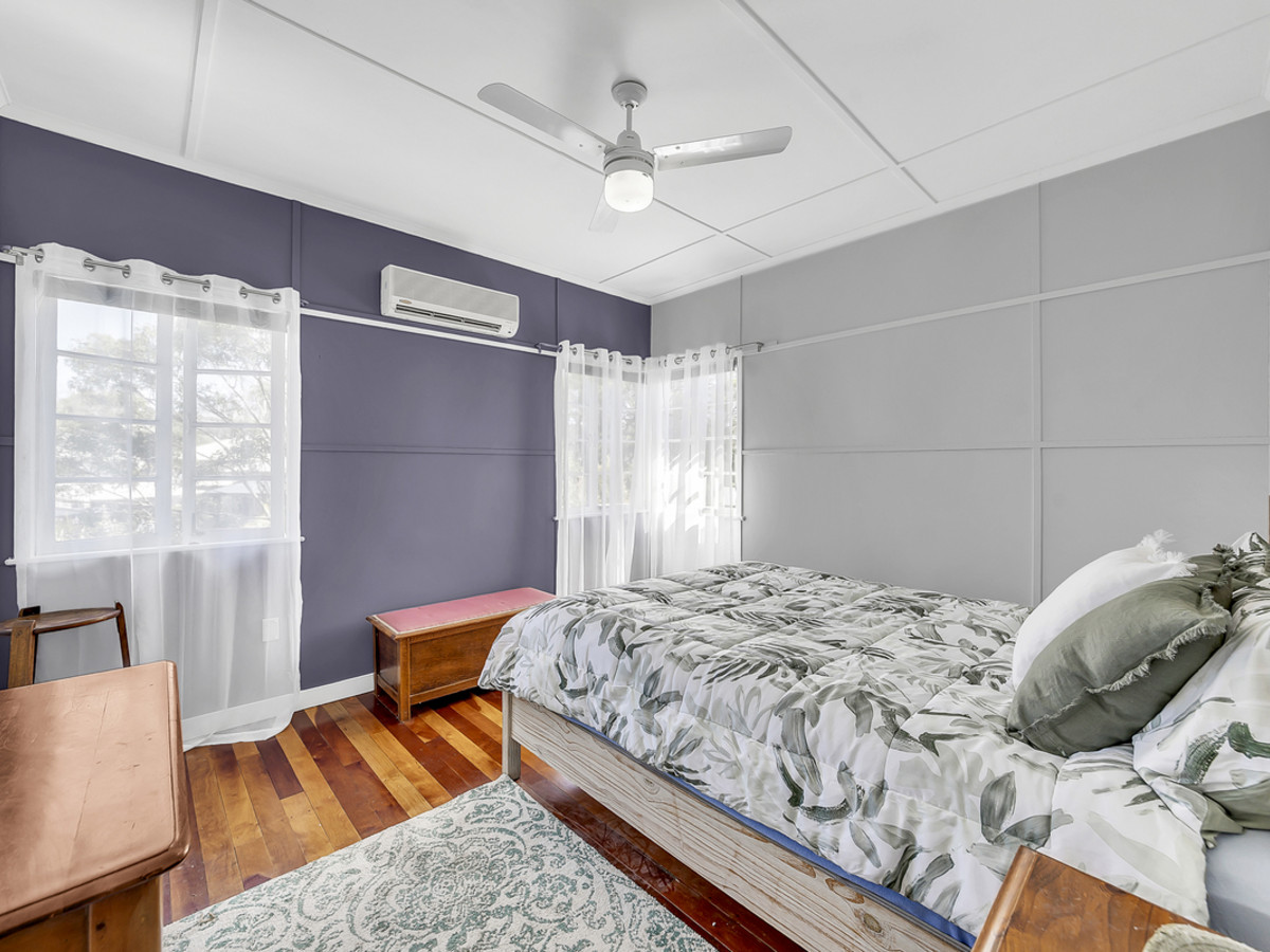Welcome to 1 Casey Street, Leichhardt! This charming three-bedroom home offers comfort and character throughout. All bedrooms feature ceiling fans, with two including free-standing wardrobes and one equipped with air conditioning. The bathroom is neat and tidy, complete with a space-saving shower over bath, vanity, and toilet, while additional linen storage can be found in the hallway.