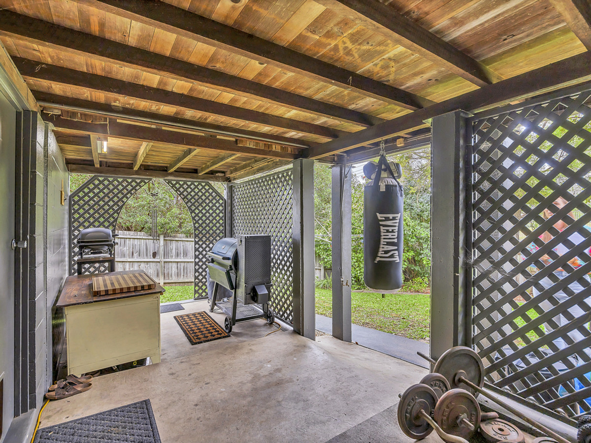 And oh, the outside. This is where the real love story begins. Picture yourself hosting summer nights on the elevated terrace, drinks in hand at the bar, the pizza oven working its magic while friends laugh under the stars. The manicured gardens and thriving veggie patch create a backdrop that feels like your own private park. Unwind in the undercover spa, gather around the fire pit on cool evenings, or enjoy a lazy afternoon BBQ in your sheltered nook. There’s a powered workshop for projects, secure two-car accommodation with both garage and carport, a dividing fence for pets, plus hot water and solar panels, a water tank and whirly bird. All of this is tucked away in a peaceful cul-de-sac, giving you privacy without sacrificing convenience.