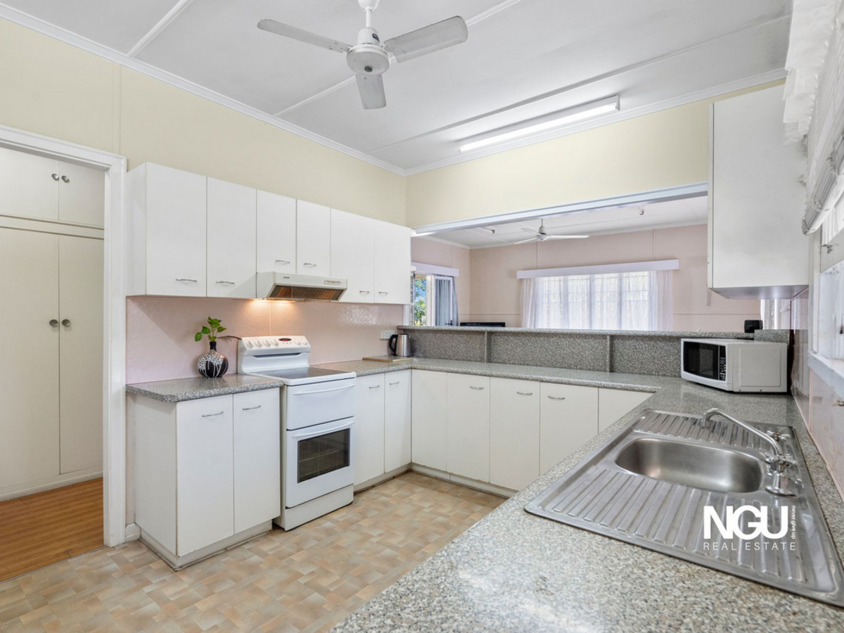 Ascending the stairs, you are greeted by a spacious covered porch, a tranquil space to unwind and appreciate the beautifully maintained gardens and mature trees. Upon entering, you are greeted by a spacious lounge, ideal for relaxation and entertaining. The heart of the home is a good-sized kitchen, thoughtfully designed with ample bench space and an abundance of storage, ensuring both functionality and style. A separate dining area complements the kitchen, creating a seamless flow for entertaining and everyday living.