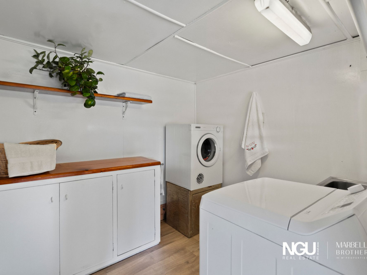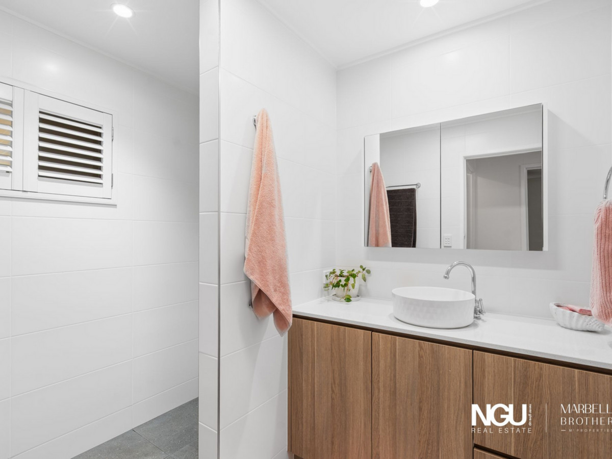 The bathroom has been updated with fresh modern finishes, dual showerheads and a separate toilet – saving buyers the hassle of renovating and offering a clean, low-maintenance space from day one. The internal laundry includes extra cabinetry and access to the lower level.