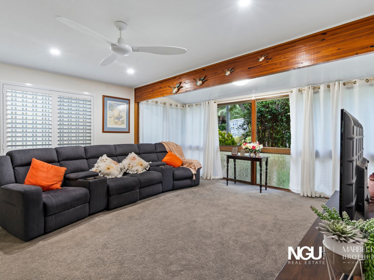 Inside, the layout is smart and family-friendly. There are four well-sized bedrooms, all with built-ins, ceiling fans, fresh carpet and Mitsubishi split-system air-conditioning. Three are positioned together on one side of the home, while the fourth is set privately on the other side, just off the second living space – perfect for guests, teenagers, a home office or even multi-generational living.