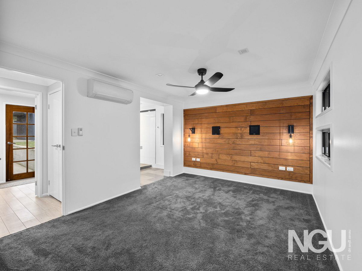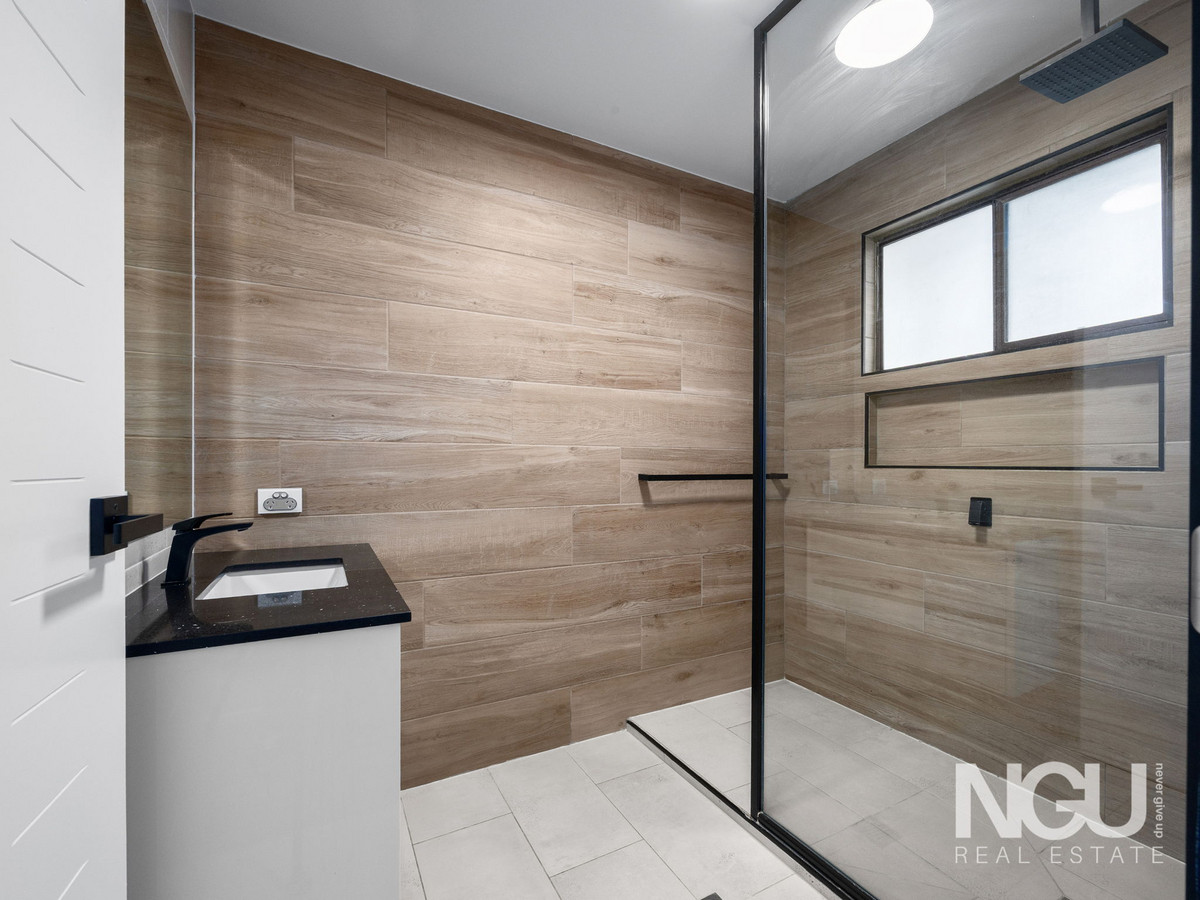Downstairs is where flexibility meets function. A generous rumpus room creates the perfect second lounge, media room, or kids’ retreat. The massive multi-purpose room is a standout – complete with plush carpet, a walk-in robe, and a private ensuite featuring a double “his and hers” shower and striking timber feature walls. This level adds so many options for growing families.