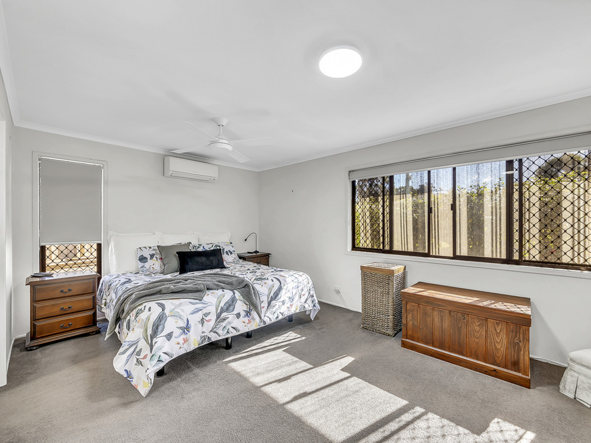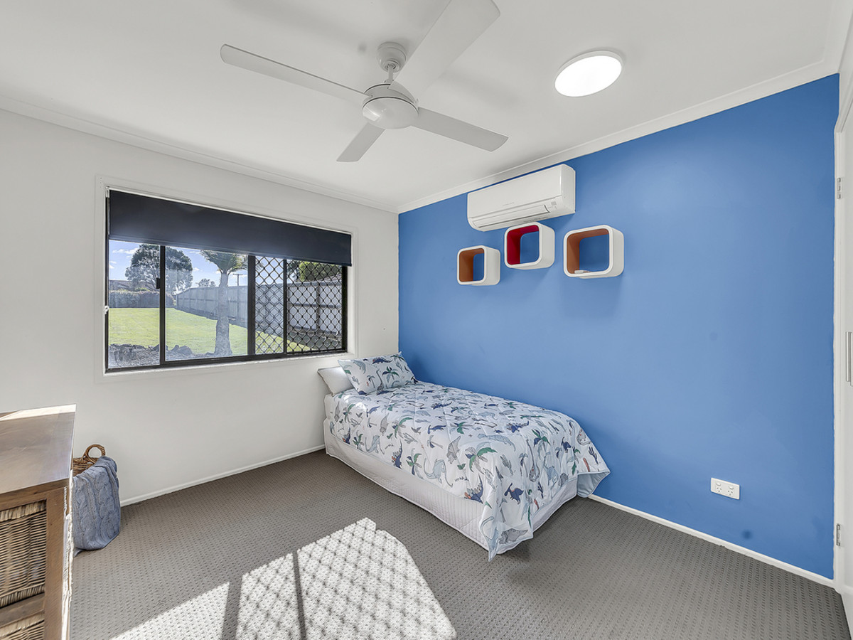 Step inside to discover five spacious bedrooms, each designed for comfort and versatility. The master suite is a luxurious retreat, complete with air conditioning, a ceiling fan, two double built-in wardrobes, and a stunning ensuite featuring a triple mirrored vanity and excellent storage. Bedrooms two and three are equally well-appointed, with built-ins, air conditioning and ceiling fans, while bedroom four also includes built-ins and a fan. Bedroom five offers flexibility as a guest room, home office, or playroom – the choice is yours.