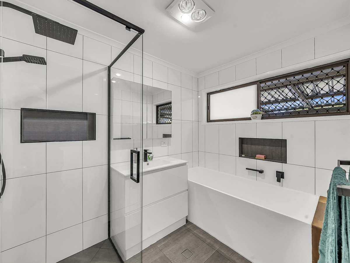 The main bathroom is generous in size and beautifully modern, with a separate shower and bathtub, excellent storage, and a separate toilet for added convenience. The internal laundry is equally practical, offering bench space, storage and direct outdoor access. Thoughtful additions like an entry cupboard and two double linen cupboards in the living area ensure there’s a place for everything.