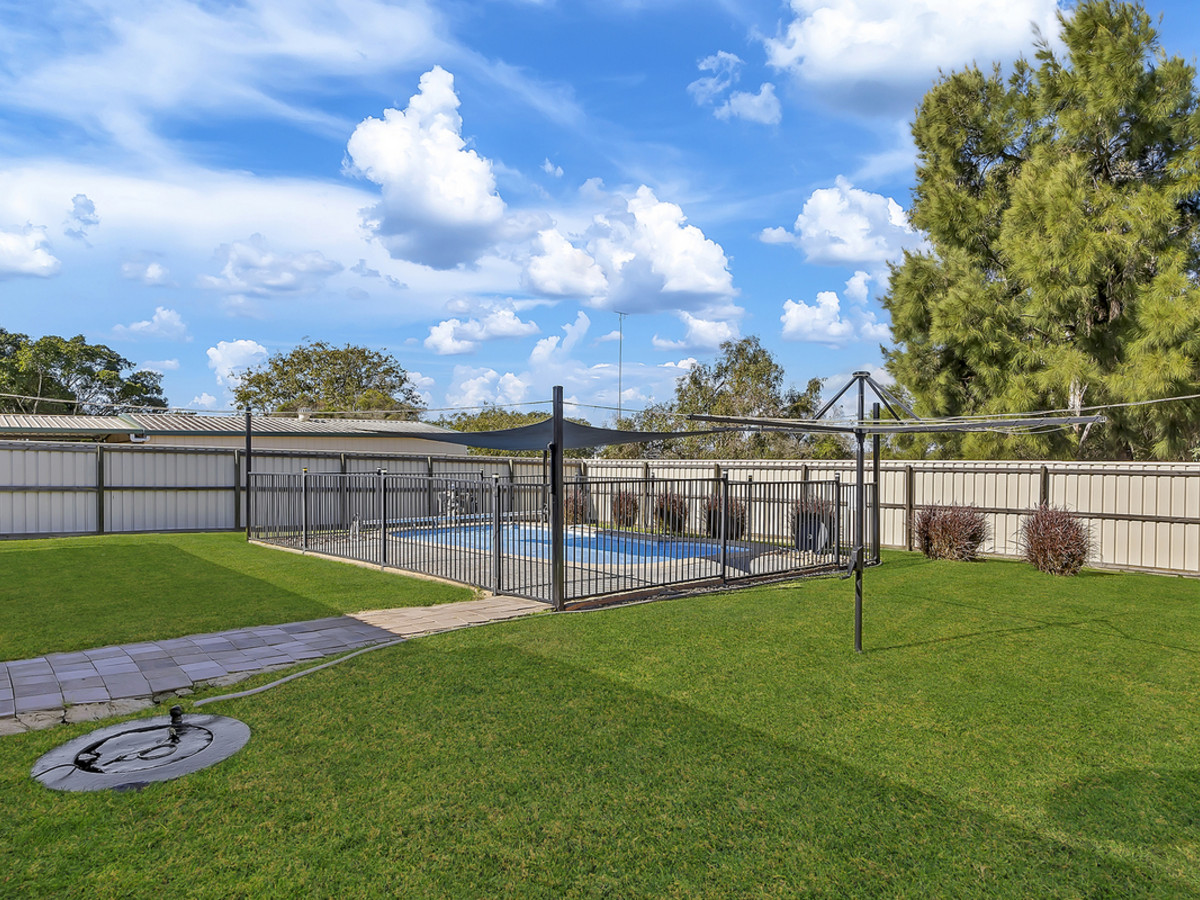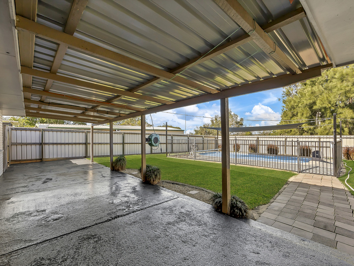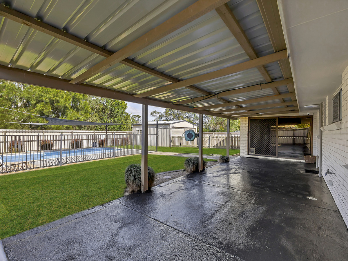 Outside, the home continues to impress. Positioned on a fully usable 1,409m² block, the backyard is your own private sanctuary. There’s ample space for all the toys with six-car accommodation including a double roller-door shed. A sparkling saltwater pool with a roller cover offers a place to unwind, while a fully covered alfresco area provides the perfect spot to entertain all year round, surrounded by beautifully landscaped gardens and the added convenience of side access.