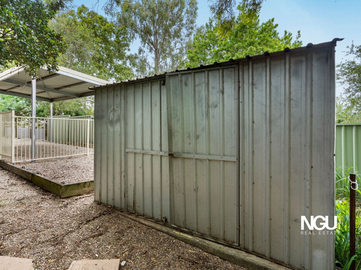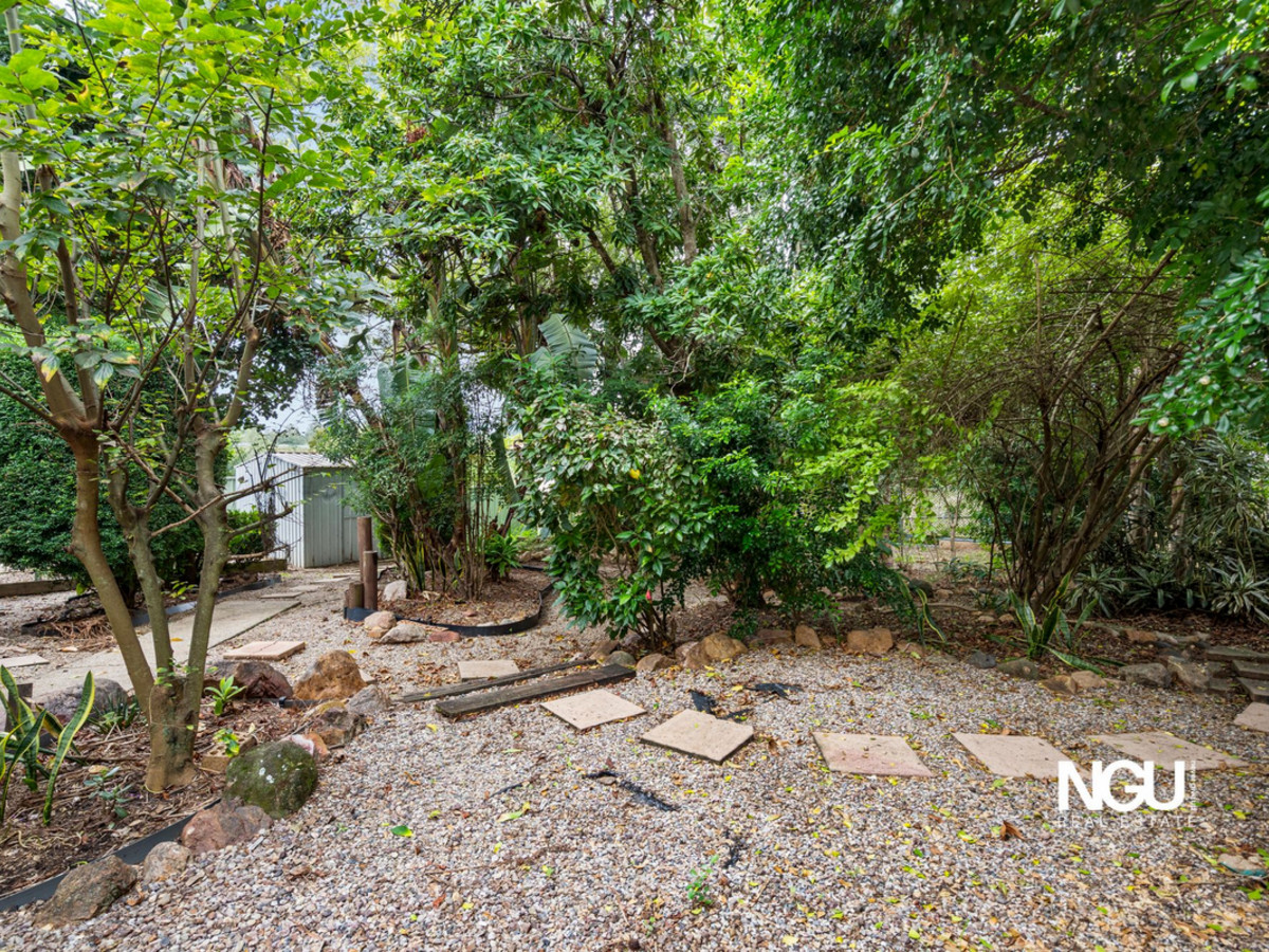 Outside, the large paved pergola area is perfect for hosting family BBQs and gatherings. The established tropical-style gardens add to the home’s charm, creating a peaceful and private outdoor oasis. Additional features include a garden shed for extra storage, a water tank, a single-car garage, and an additional carport, ensuring ample parking and functionality.