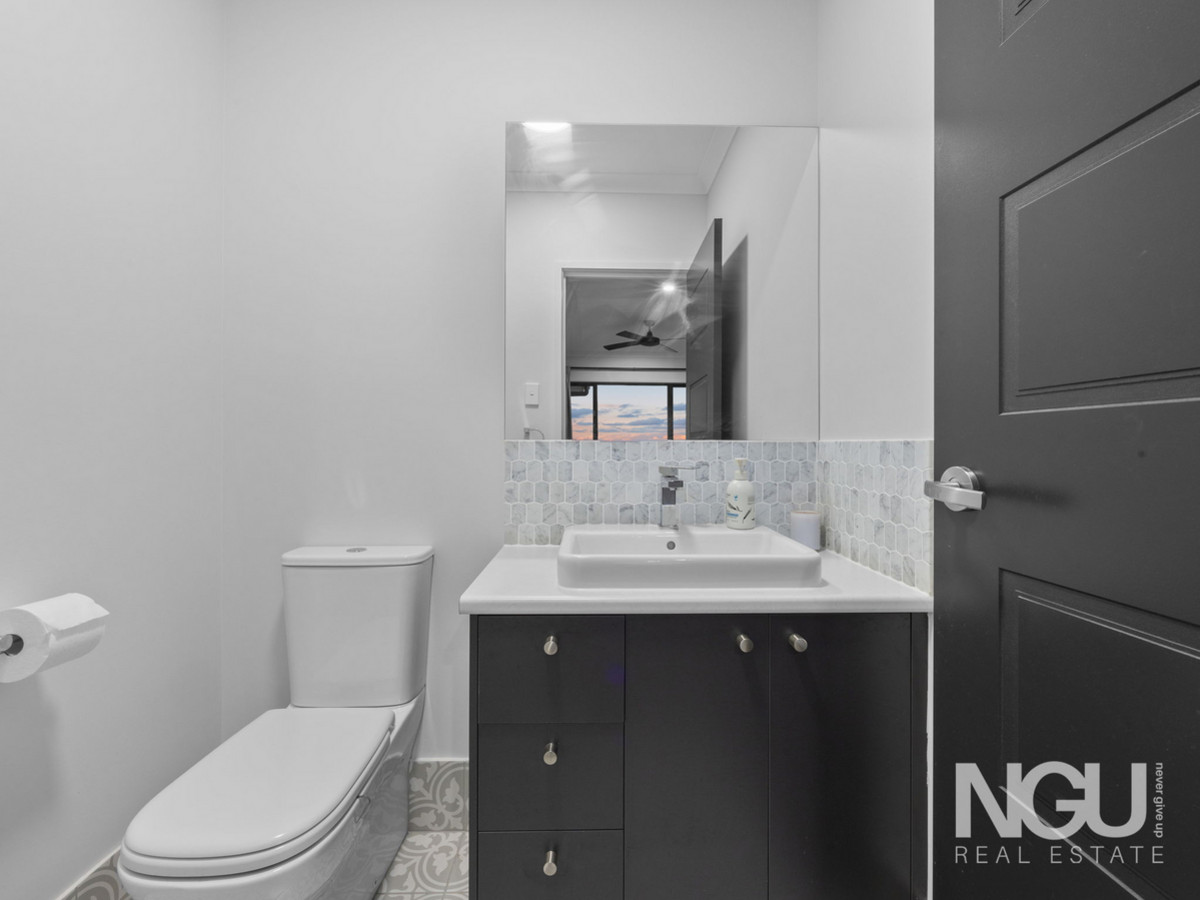 A true standout for entertainers and growing families alike, the home delivers three internal living zones, including a sound insulated media room, a central open-plan family area, and a kids’ or guest retreat – all enhanced by tinted windows and Invisi-Gard security screens for comfort, privacy, and peace of mind. There’s also a built-in study nook ideal for working from home or supervising homework.