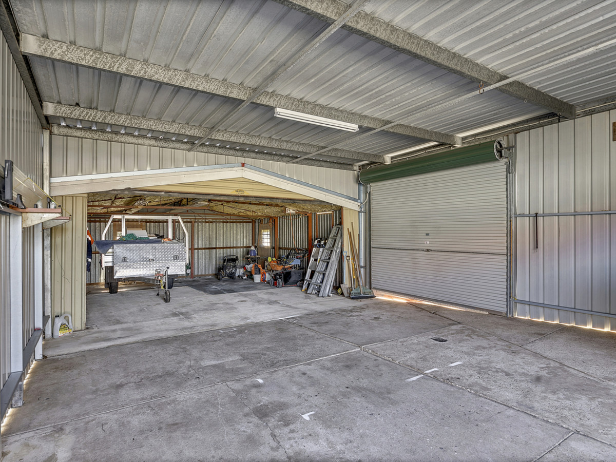 The list of extras is extensive – most of the home is fitted with security screens, the yard is fully fenced with double gate side access and rear access, and the lawns and gardens are lush, private, and easy to maintain. You’ll also enjoy the benefit of two water tanks with pumps, a powerful 7.5kW solar system, and an impressive four-bay shed with power and lights, featuring both an electric roller door to the front and a manual roller door to the side. The roof and walls are insulated, offering year-round comfort and energy efficiency.