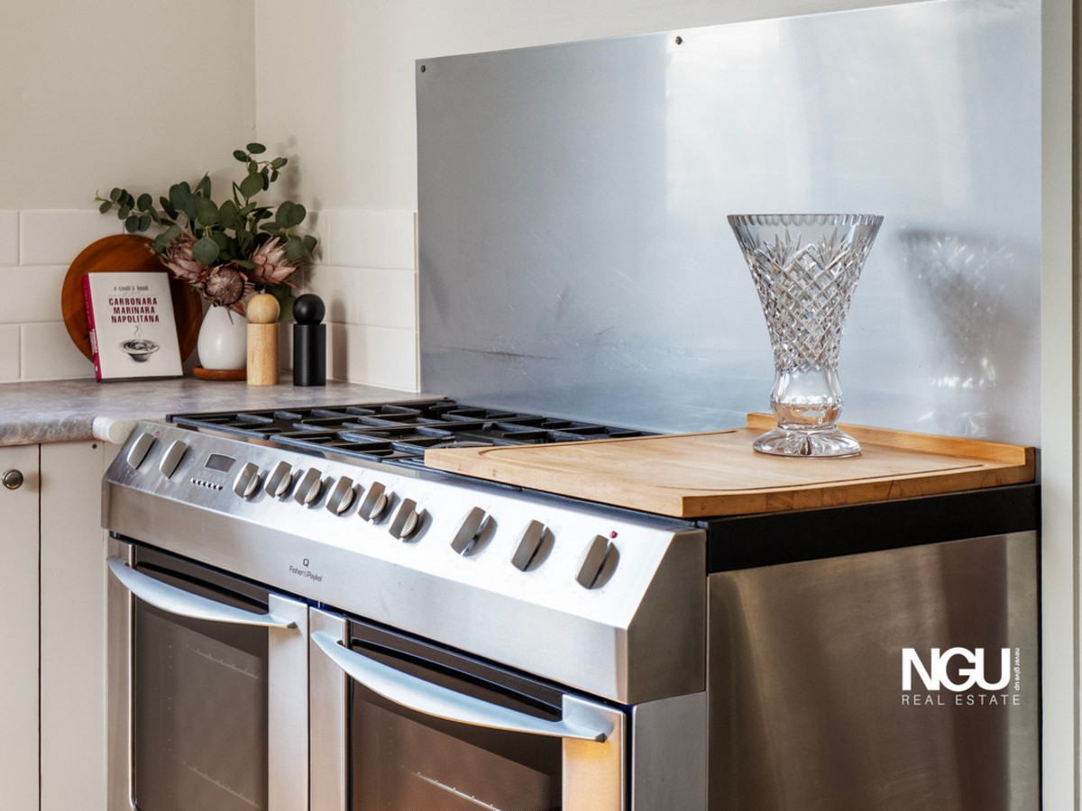 The heart of the home is the large, well-appointed kitchen complete with a 1200mm dual oven and gas cooktop ideal for those who love to cook and entertain. The master bedroom connects to a charming two-way bathroom and a walk-through closet, offering both convenience and style with two additional bedrooms.