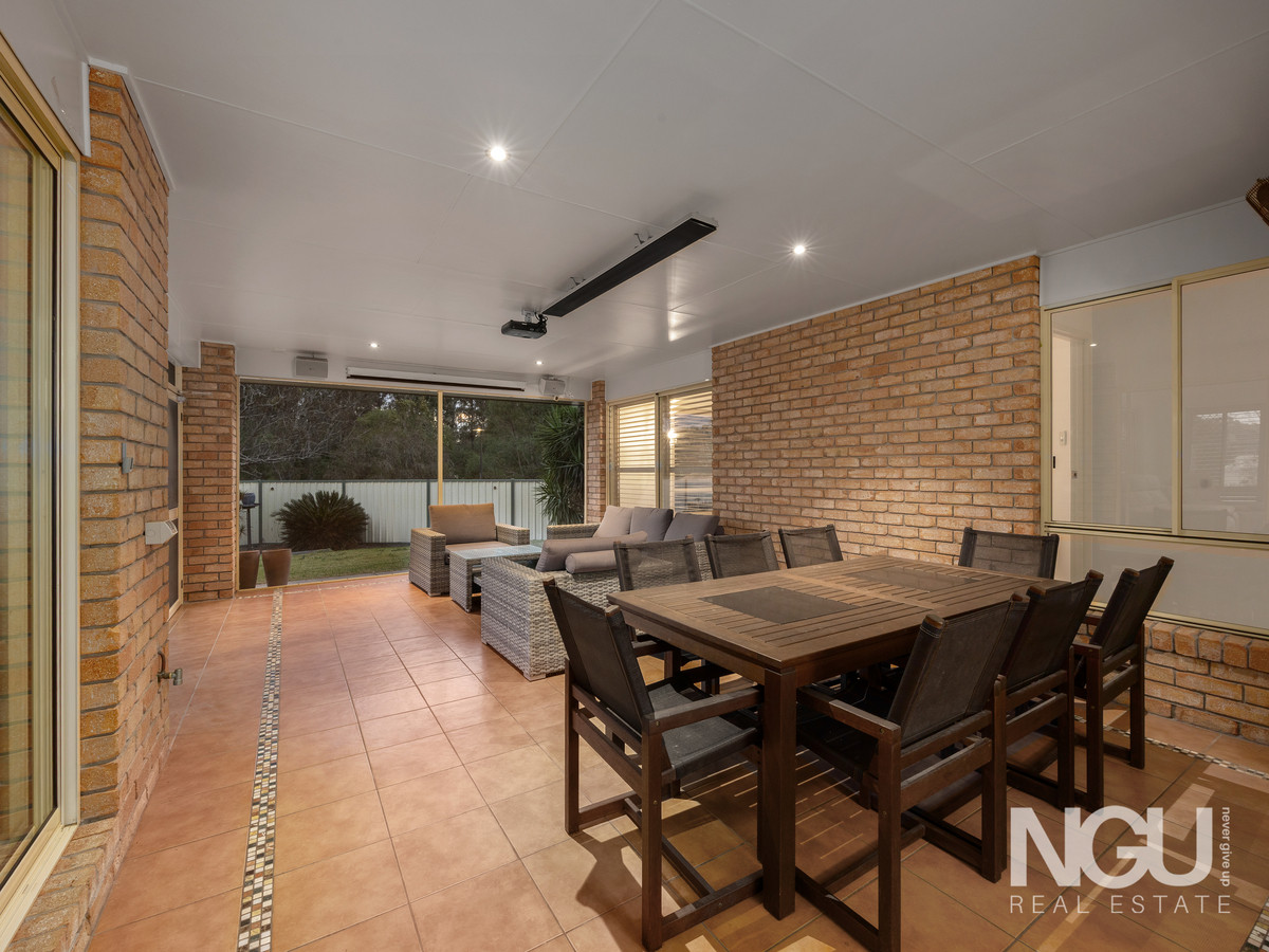 Step outside and you’ll discover two distinct entertaining zones. The large, fully enclosed alfresco area is fitted with fly mesh, outdoor heating, and even a projector with a pull-down screen and sound system for memorable outdoor movie nights. An additional BBQ area caters to weekend gatherings, while the spacious back lawn offers room for kids and pets to play, all with the scenic backdrop of the sporting fields beyond.