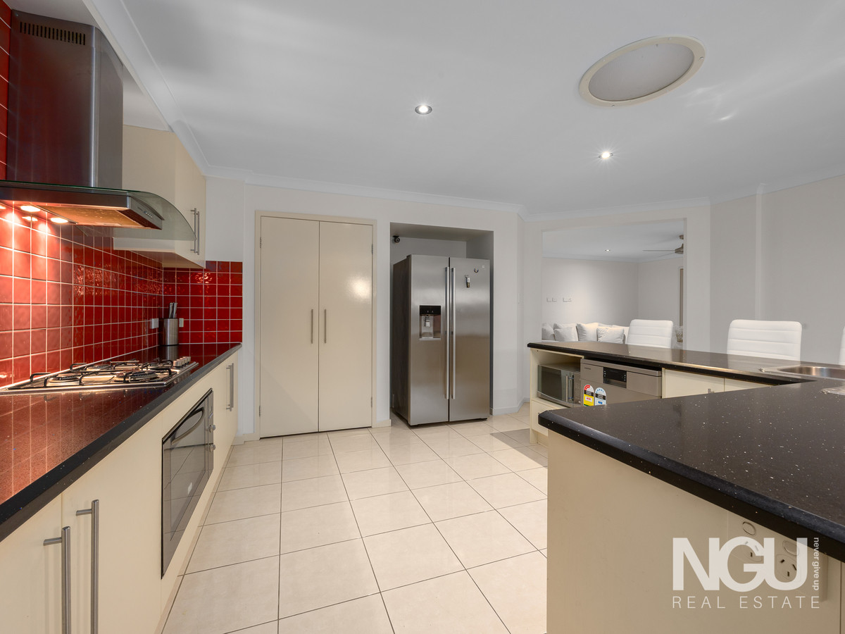 The heart of the home is the massive chef’s kitchen, fitted with stone benchtops, quality appliances, a plumbed fridge space, and ample storage. Whether you’re preparing family dinners or catering for a crowd, this space delivers in both form and function. A ducted vacuum system adds a touch of everyday convenience.