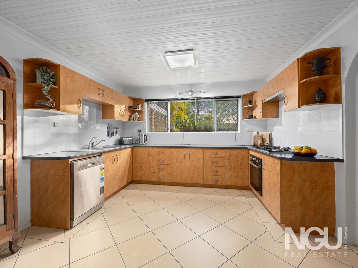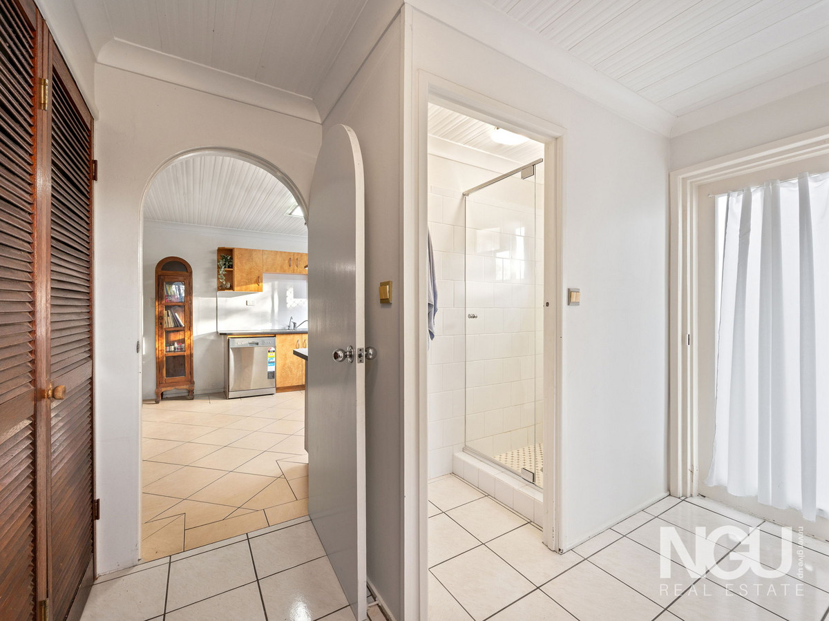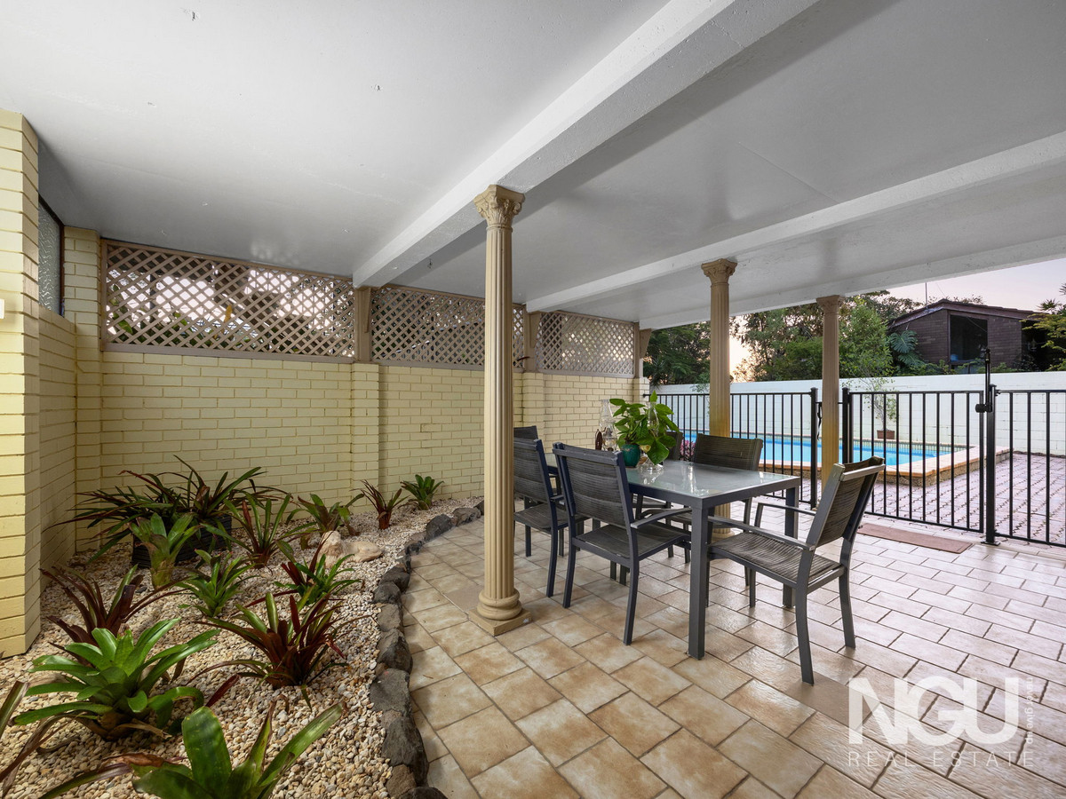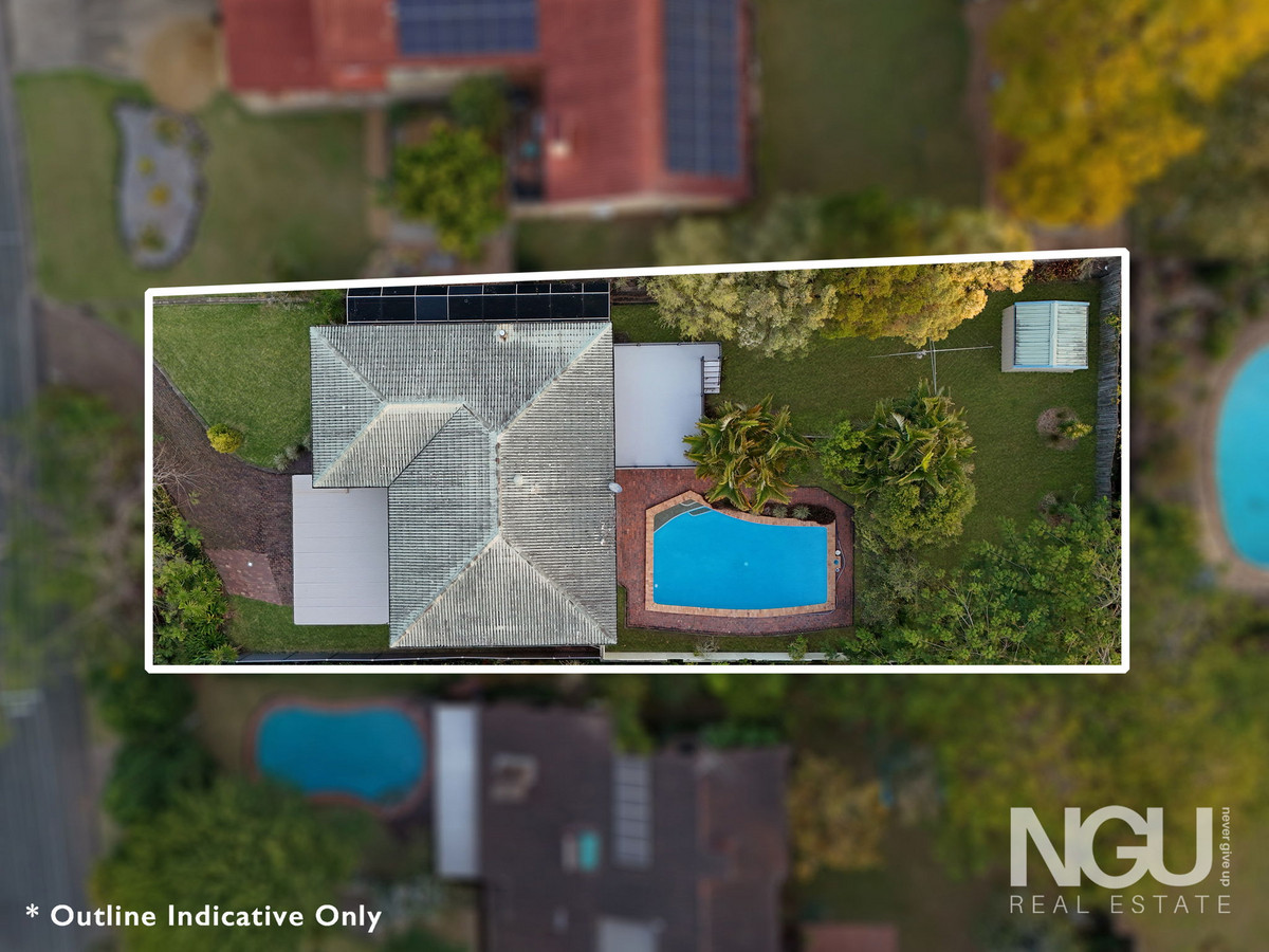 Outside, the property offers plenty of grassed yard space for kids and pets to play freely with the addition of a garden shed, while still allowing plenty of space for further additions. The large, crystal-clear in-ground pool is framed by established, low-maintenance gardens and a striking rock wall feature, ensuring a tranquil and secluded atmosphere.