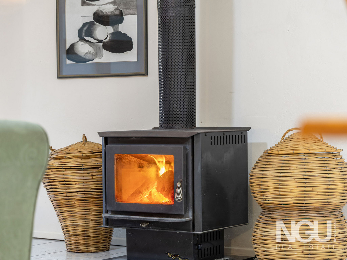 Stepping inside, you are welcomed into the ground floor, the true heart of the home. An expansive, open-plan living and dining area immediately captures your attention, anchored by a charming wood-burning fireplace. This vast space flows seamlessly, offering endless options for configuration. At the centre of this level is the massive kitchen, a highly functional space featuring ample storage, electric appliances and a walk-in pantry. A large window over the sink provides a perfect vantage point to watch over the sparkling in-ground pool, making it easy to keep an eye on the family while preparing meals.
