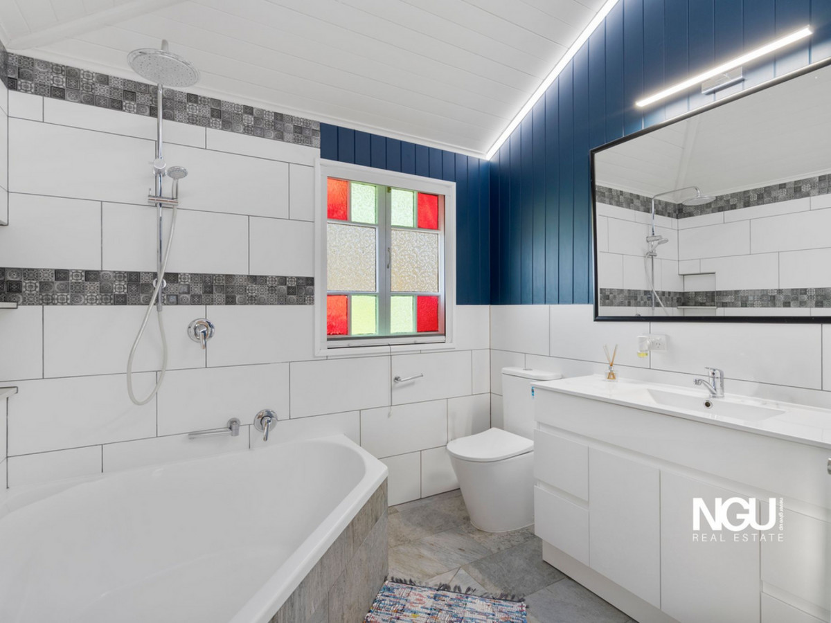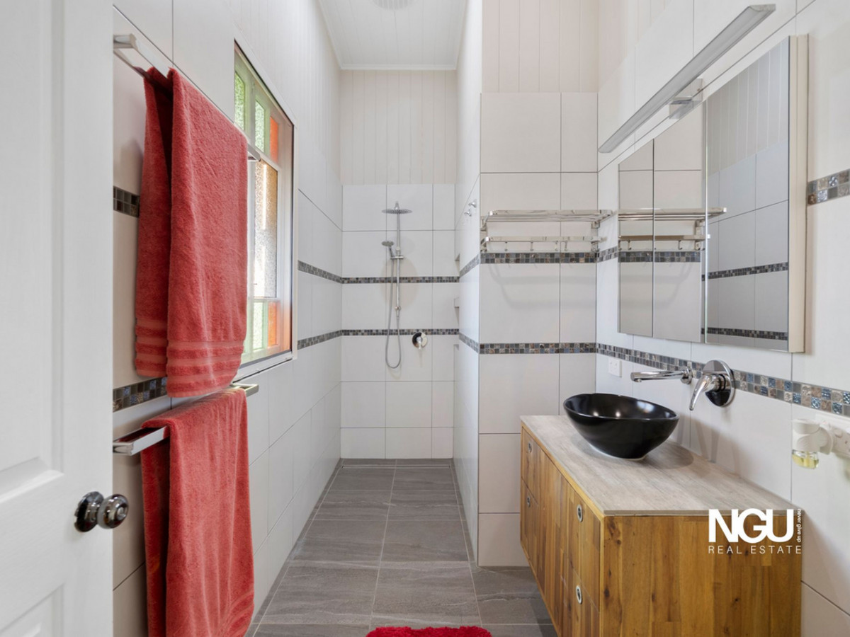 There are three generous bedrooms, including a master with a walk-in robe and contemporary ensuite, while the main bathroom offers a deep corner bath and rainfall shower. Thoughtful updates throughout include a modern laundry with epoxy bench-tops, breezeways with heritage fretwork and a digital single-rate power meter. Under the home, you’ll find lockable storage, a secondary laundry setup, and a greenhouse, all complemented by established gardens and mature trees.