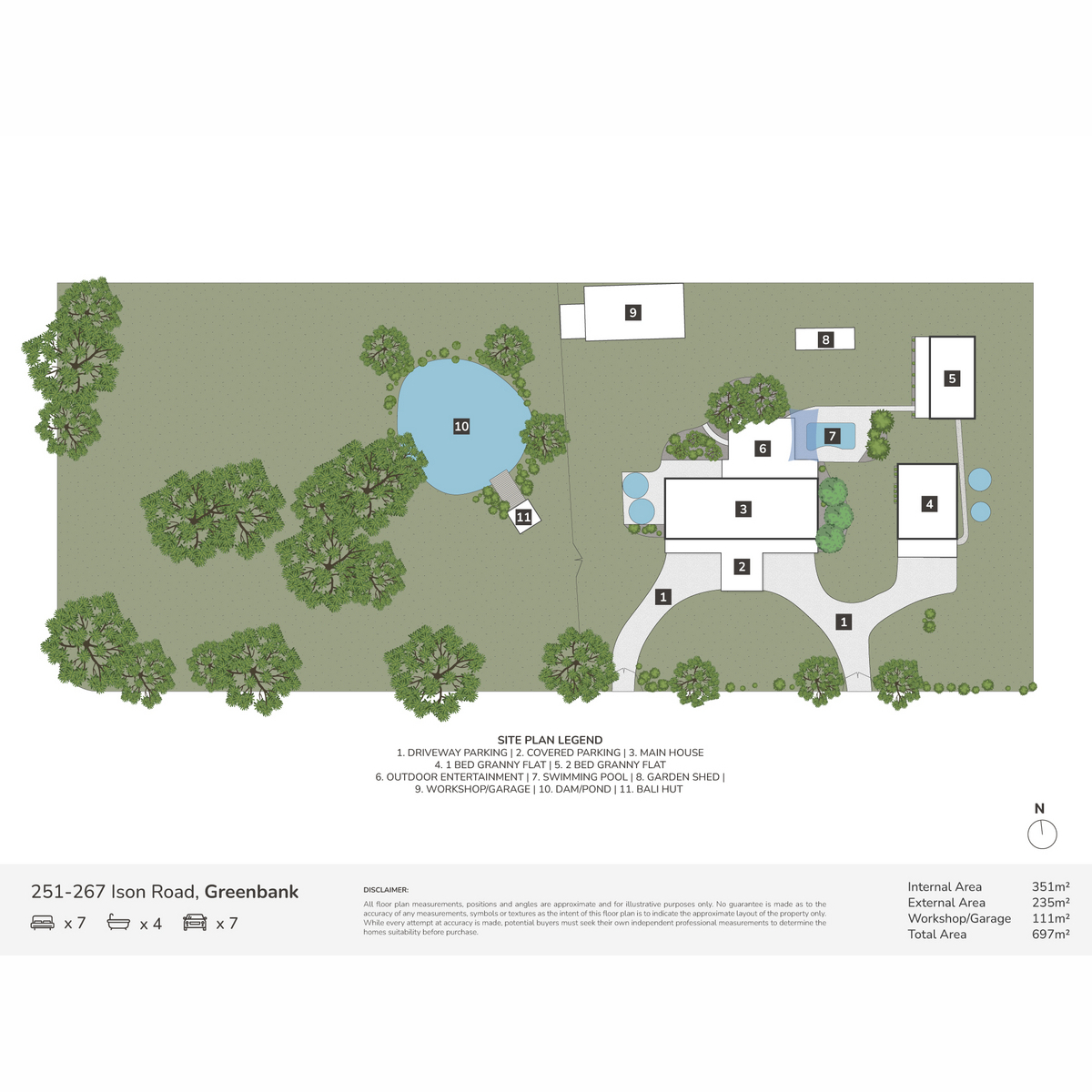 Welcome to 251-267 Ison Road, Greenbank, set across a sprawling 10,000m² block, this exceptional property offers a rare combination of lifestyle, functionality, and flexibility for multi-generational living. The thoughtfully planned layout includes multiple self-contained buildings, each connected by landscaped paths and communal zones that effortlessly bring the entire property together. A central alfresco and pool area act as the heart of the home, seamlessly linking indoor and outdoor living while providing a shared space for entertaining or relaxing. The lush surrounds feature a private pond with a viewing deck and Bali hut retreat, creating a tranquil setting that enhances privacy for each residence. A range of unique features support a self-sustaining and secure rural lifestyle and is perfectly suited for large or extended families seeking space without sacrificing connection. With everything thoughtfully prepared and in place, all that’s left to do is arrive, unpack, and enjoy the lifestyle that awaits.