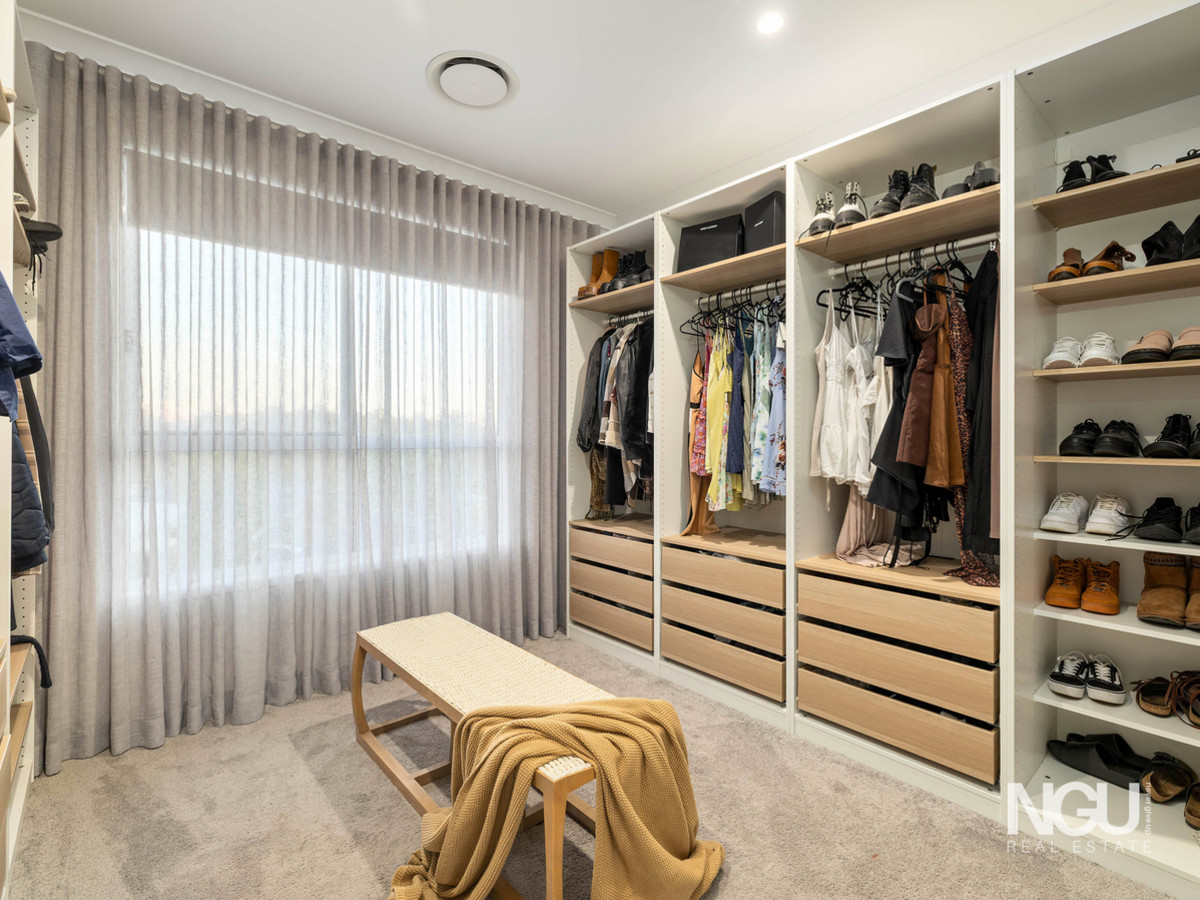 Your Luxurious walk-in wardrobe has full height cabinetry, drawers and shelving