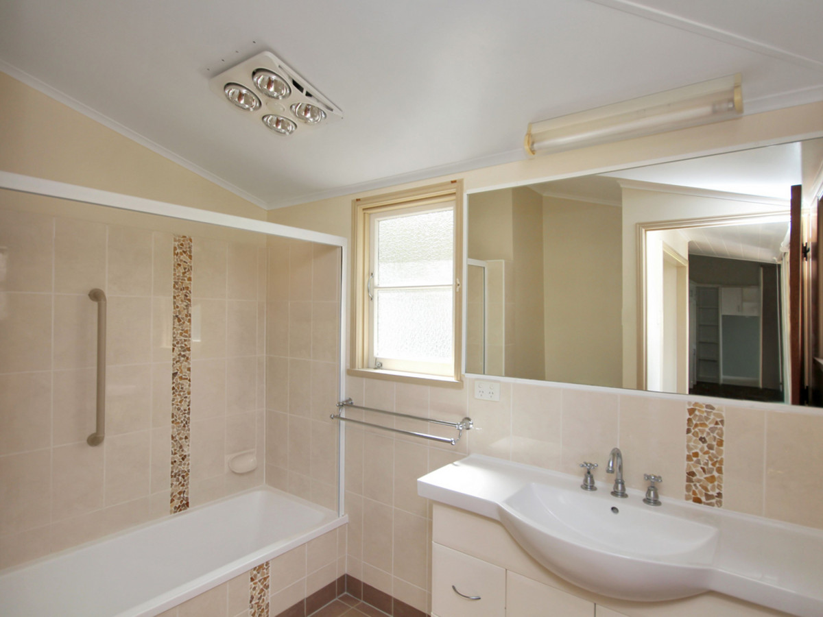 The air-conditioned living area flows into a crisp white kitchen featuring ample bench and cupboard space, while the spacious bathroom offers a shower over bath. All three bedrooms are well-sized, with all also featuring air conditioning for year-round comfort.
