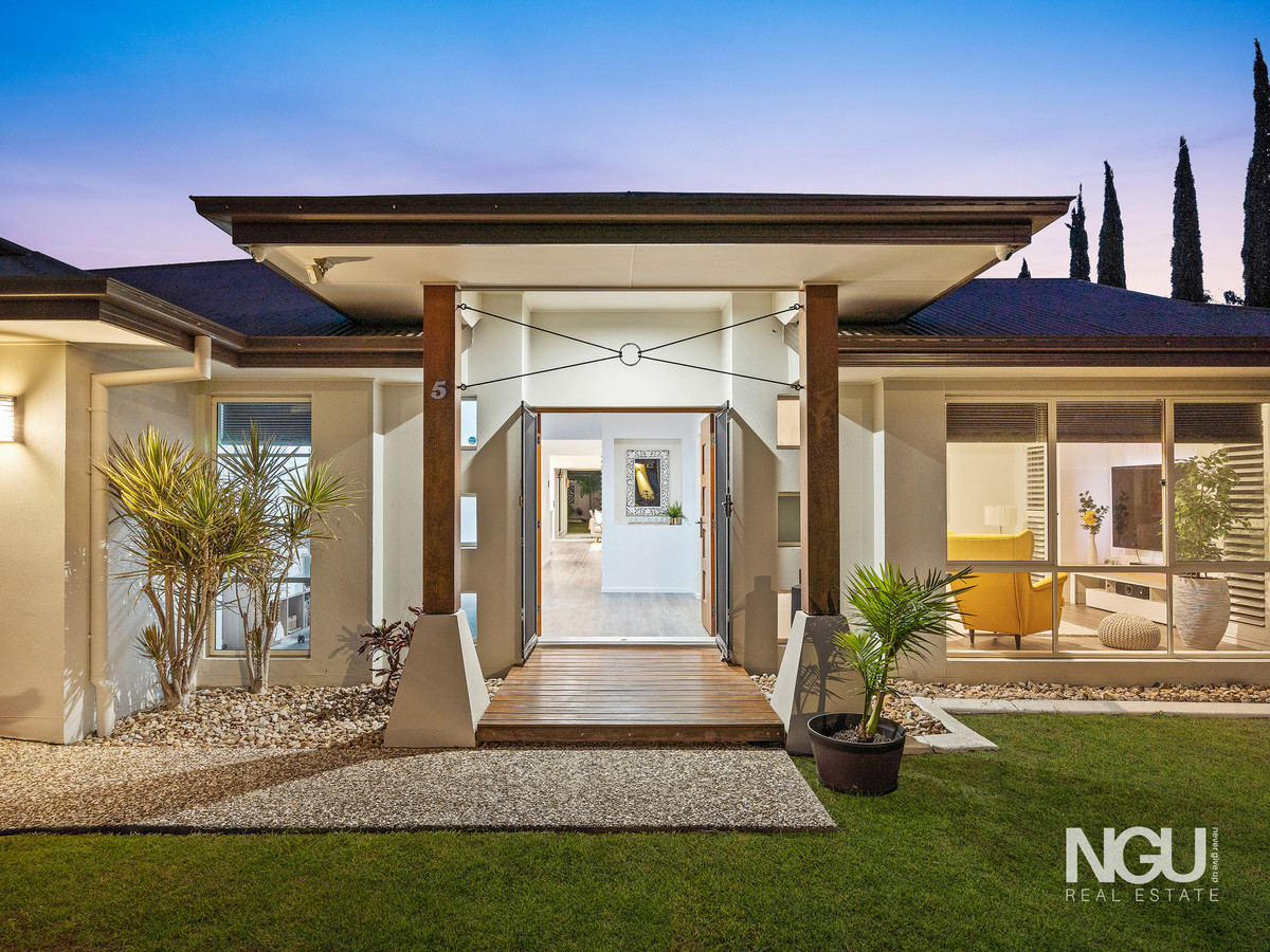 Welcome to 5 Hallow Crescent, Augustine Heights; a residence with exceptional charm and elegance located in one of the most coveted suburbs. This stunning home epitomises luxurious living, inviting you to immerse yourself in a seamless blend of opulence and comfort – an experience that embodies the essence of gracious living. The sprawling living spaces beckon you to relax and indulge in the grandeur. This property eloquently showcases the fusion of indoor and outdoor living, transcending the ordinary and offering a lifestyle beyond expectations.