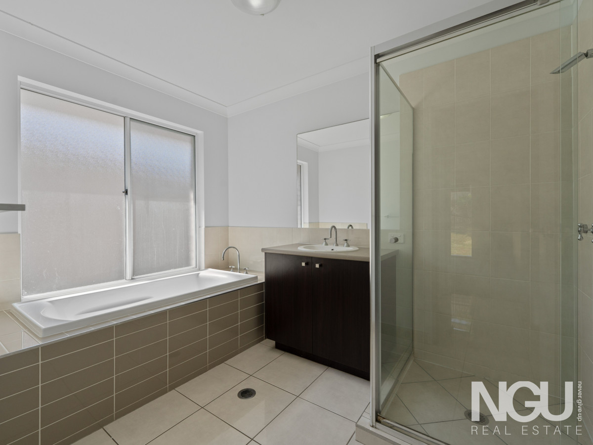 The master suite offers a walk-in robe and ensuite, while the additional three bedrooms each have built-in robes. The main bathroom includes a bathtub, shower, and vanity. An internal laundry adds further convenience.