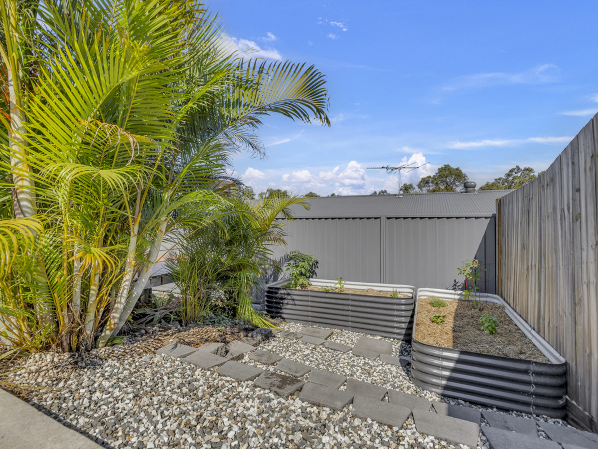 And then there’s the wow factor – step outside to a gorgeous undercover entertaining area with ceiling fan and power, which spills out onto a freshly stained timber deck with elevated views. From here, you can wander down to the thoughtful veggie garden or enjoy the fully fenced yard with its lush grass and side gate access to the adjoining street. It’s the ideal setup for families, pets, or even those who need space for a trailer.
