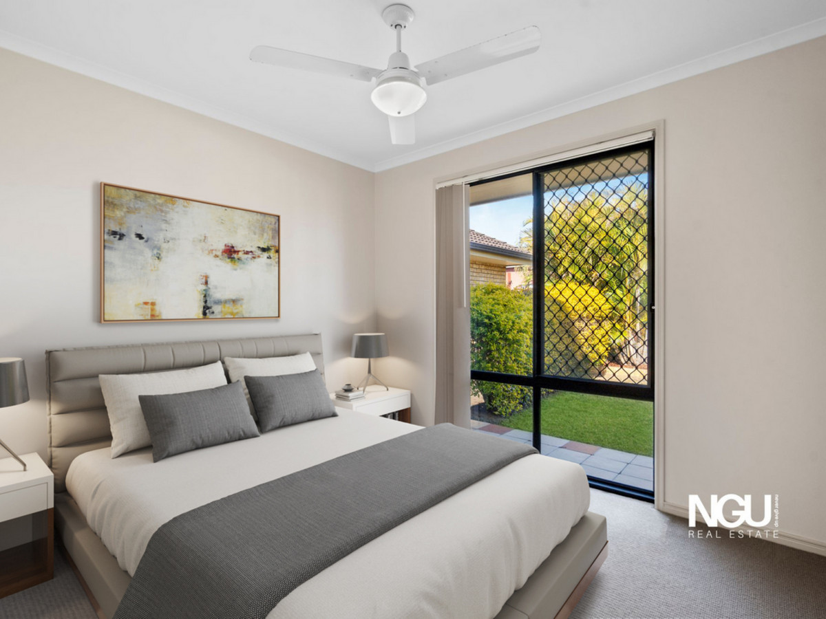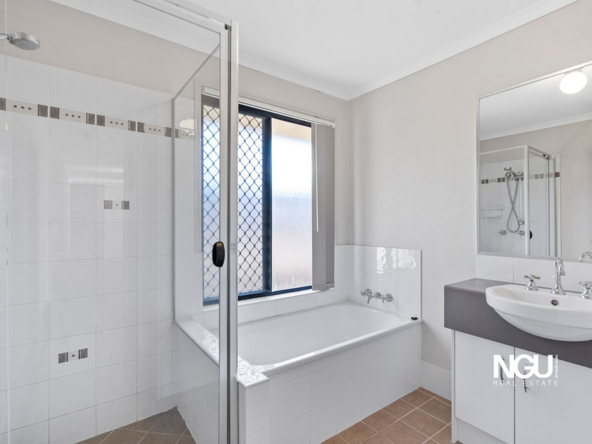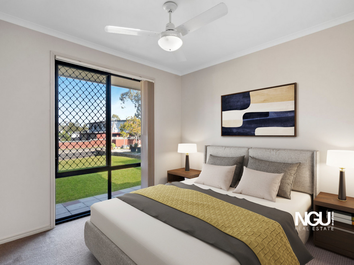 with freestanding bath, shower and a separate toilet, internal laundry with direct access to the backyard, split-system air conditioning, quality tiled flooring, window finishings and security screens throughout.