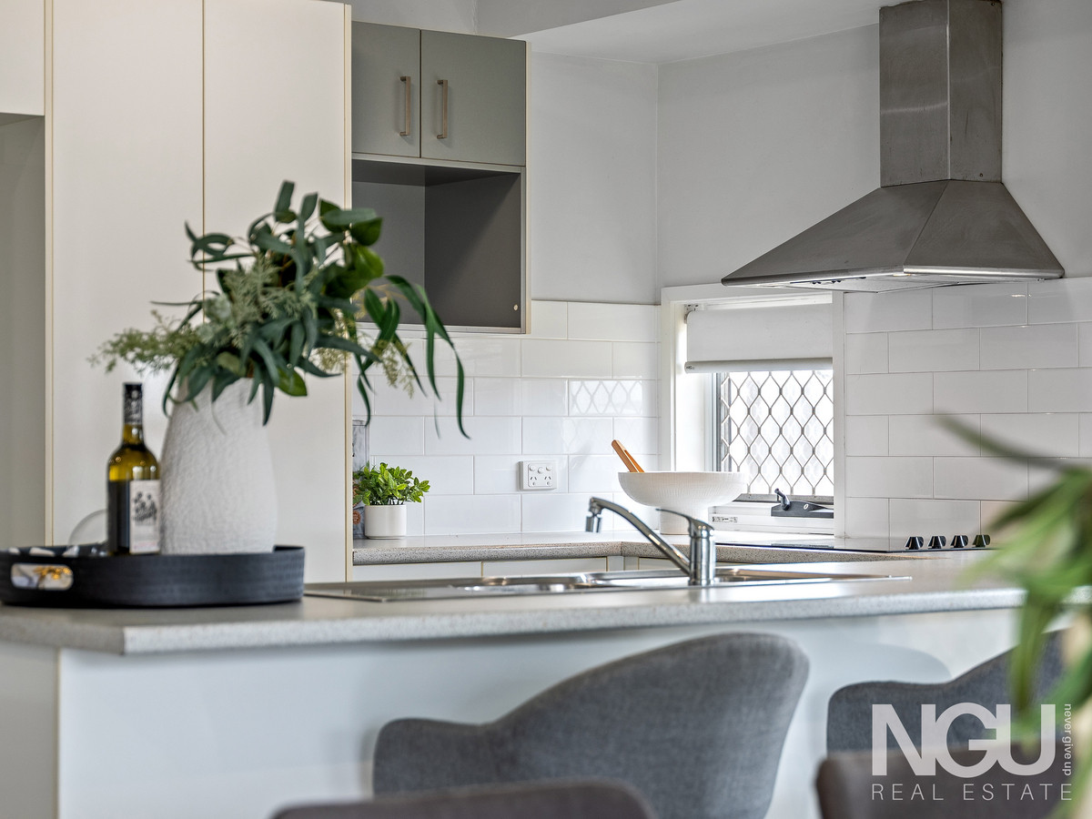 The spacious kitchen is the heart of the home, offering plenty of bench and storage space, and flows seamlessly to the outdoor patio – a great spot for entertaining or relaxing while enjoying the elevated views of the city skyline. With excellent side access, there’s room for the boat, trailer, or additional vehicles, and the fully fenced yard offers security and space for kids and pets.